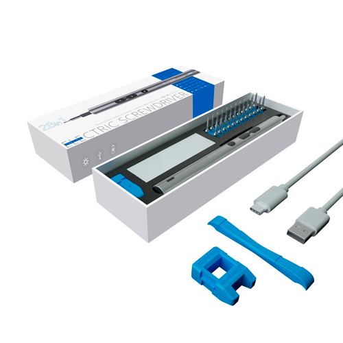 Мини алюминиевая электроотвертка со сменными битами для ремонта различных электроприборов и современных гаджетов. Имеет эргономичную форму в виде ручки, благодаря чему удобно ложится в руке. Также оснащена магнитом для фиксации бит и фонариком для проведения точных работ в плохо освещаемых местах.